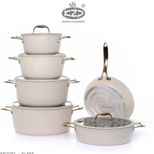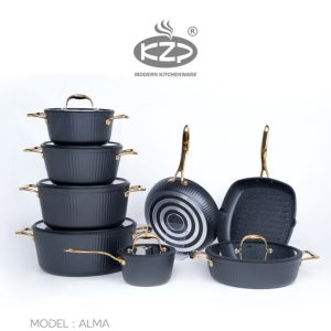 سرویس قابلمه KZP کالکشن آلما ۱۱ پارچه دستگیره طلایی