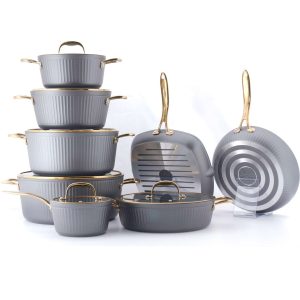 سرویس قابلمه KZP کالکشن آلما ۱۴پارچه دستگیره طلایی