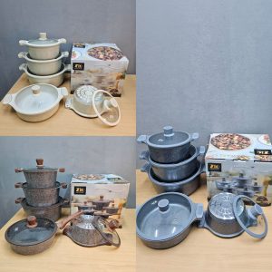سرویس قابلمه KZP کالکشن آلما ۹ پارچه درب سیلیکونی دستگیره طلایی