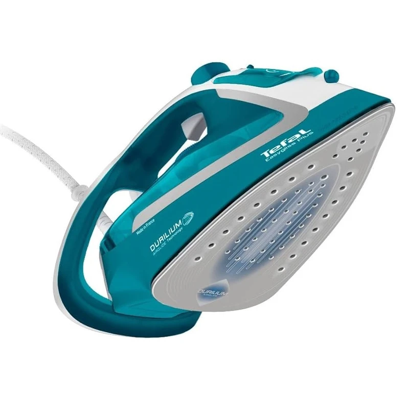 اتو بخار تفال مدل FV5737 با طراحی شکیل و خاص به رنگ سبز فیروزه ای ترکیب شده با سفید نظر شما را به خود جلب می کند. اندازه و وزن مناسب بدنه، طراحی ارگونومیک، خوش دست بودن و کفی لغزنده و روان، اتوکشی را به تجربه ای راحت و شیرین تبدیل کرده است. کفی ضد خش دوریلیوم Durilium با ایجاد لغزندگی عالی، سر خوردن سریع و راحت را فراهم کرده و همچنین برای دوام عالی و عملکرد طولانی مدتT طراحی شده است که می توانید روز به روز به آن اعتماد کنید. سوراخ های متعدد کفیT حداکثر توزیع بخار و پوشش دهی عالی روی پارچه ها را تضمین می کند.