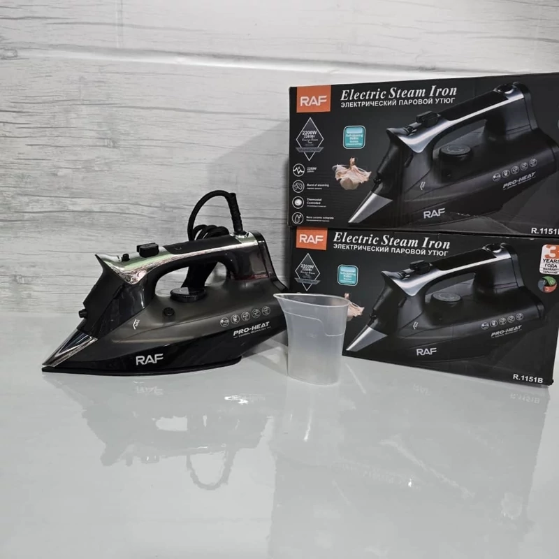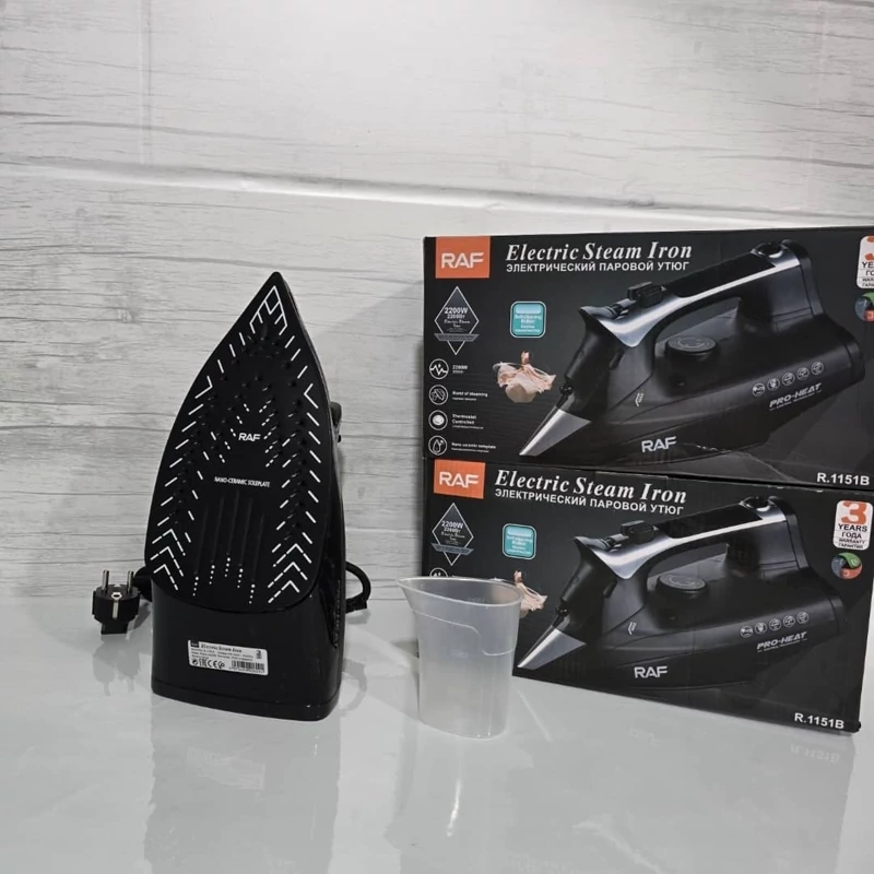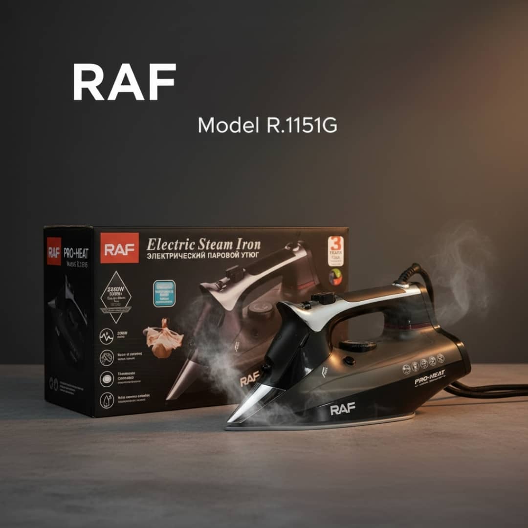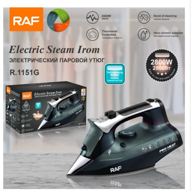 اتو بخار راف مدل R.1151 قدرت مصرفی آن ۲۸۰۰ وات که گرمای زیادی را تولید و اتوکشی لباس ها با سرعت بیشتری انجام می شود. این دستگاه یک دکمه ی تمیز شونده دارد که از رسوبات و ته نشین شدن املاح دیگر در اتو محافظت می کند. جنس بدنه این دستگاه از پلاستیک مقاوم ABS است. همچنین جنس صفحه آن از نانو سرامیک که به صاف شدن بهتر لباس ها کمک می کند.