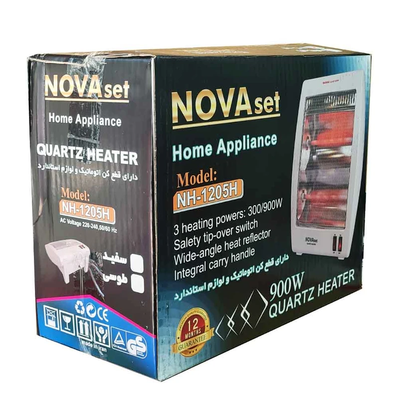این بخاری تابشی برای گرم کردن فضای اطراف خود در محیط های سرد کاربرد زیادی دارد. بخاری برقی Nova Set مدل H-1205H کم حجم و سبک طراحی شده تا به آسانی بتوان آن را جابجا کرد و در هر اتاق و حتی روی میز از آن استفاده نمود.