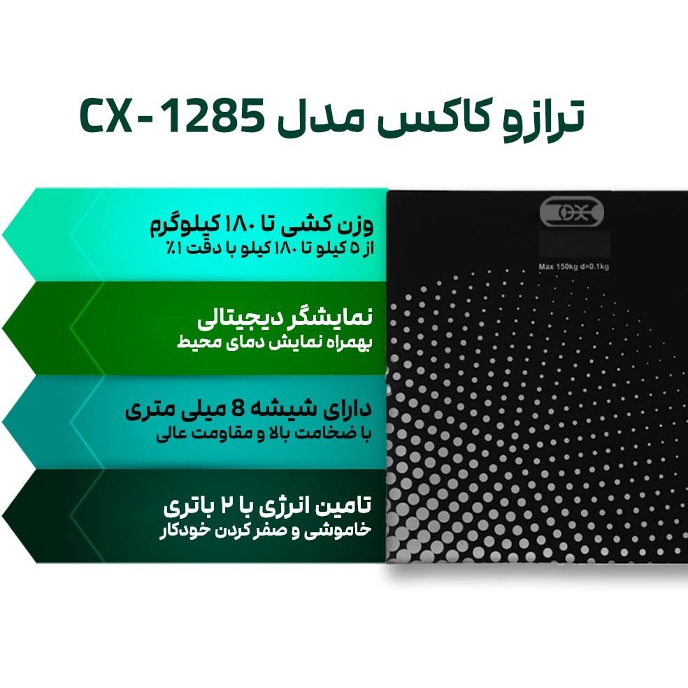 ترازوی وزن کشی کاکس مدل CX-1285 با ترکیب طراحی زیبا، دقت بالا، امکانات کاربردی و خدمات پس از فروش معتبر، انتخابی عالی برای افرادی است که به دنبال یک ترازوی قابل اعتماد و با کیفیت هستند. این محصول با توجه به ویژگی‌هایی که ارائه می‌دهد، می‌تواند نیازهای شما را در زمینه اندازه‌گیری وزن به بهترین شکل ممکن برآورده کند. اگر به دنبال یک ترازوی دقیق، مقاوم و کارآمد هستید، مدل CX-1285 از برند کاکس گزینه‌ای است که نمی‌توانید از آن چشم‌پوشی کنید.