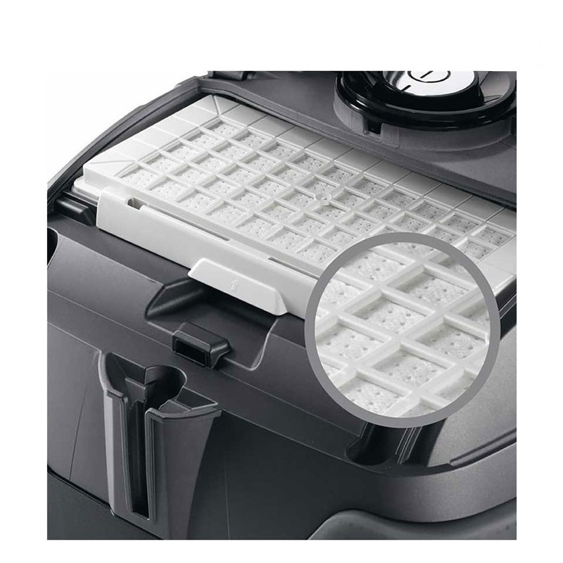 یکی دیگر از امکاناتی که شما را از بابت انتخاب این دستگاه مطمئن می کند کیسه های جایگزین گرد و غبار TYP G ALL است. این کیسه ها به راحتی جابجا می شوند. وجود نازل تودوزی XXL جهت تمیز کردن سریع مبلمان روکش دار، بهترین قابلیت این نوع جاروبرقی است. این جاروبرقی مجهز به فیلتر HEPA جهت انتقال هواست که 99.95 درصد از ذرات ریز گرد و غبار، باکتری ها و آلاینده ها را فیلتر می کند.