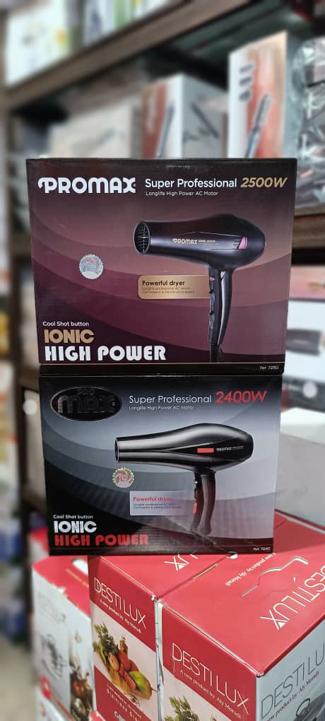 توان موتور سشوارهای خانگی عموماً زیر ۲۰۰۰ وات و توان موتور سشوارهای حرفهای بالای ۲۰۰۰ وات است. شرکت پرومکس اقدام به تولید سشوار حرفهای با موتور AC و توان ۲۴۰۰ وات کرده است.سشوار حرفه ای Promax مدل 7240 علاوه بر قدرت موتور بالا دارای فناوری تولید یون، دکمهی باد سرد و سه متمرکز کنندهی هوا است که نیازهای شخص را برای استفادهی حرفهای برآورده میکنند.
