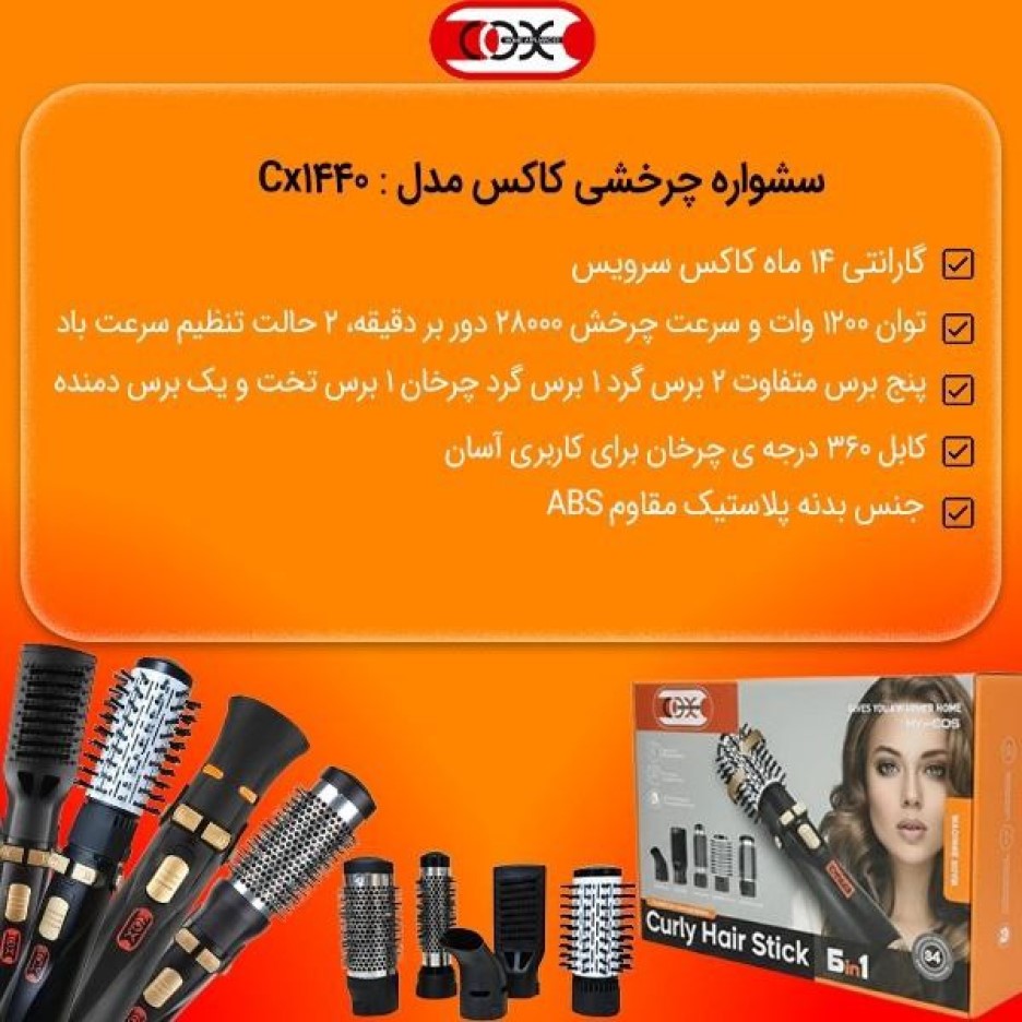 - سشوار چرخشی کاکس CX-1440 یک ابزار ساده اما قدرتمند برای خشک کردن و حالتدهی مو در خانه است.